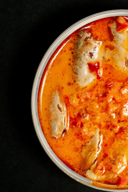 The sauce, a delicate blend of tomato, olive oil, and traditional Spanish spices, enhances the sardines without overwhelming their fresh, oceanic character. Perfect for an elegant tapa, served on crusty bread, or paired with a crisp white wine.