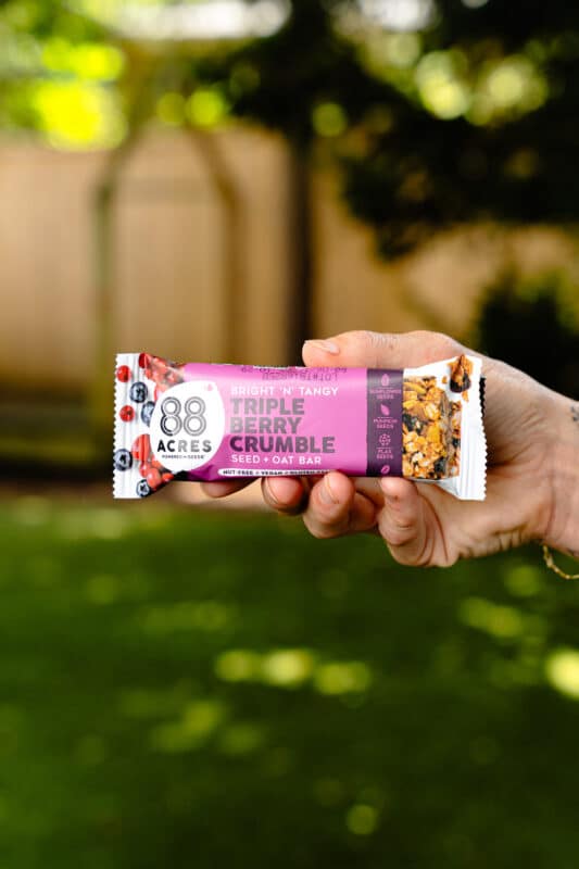 This 88 Acres Dark Chocolate Sea Salt Seed + Oat Bar is made with simple ingredients and is allergy-friendly, nut-free, gluten-free, and vegan.
