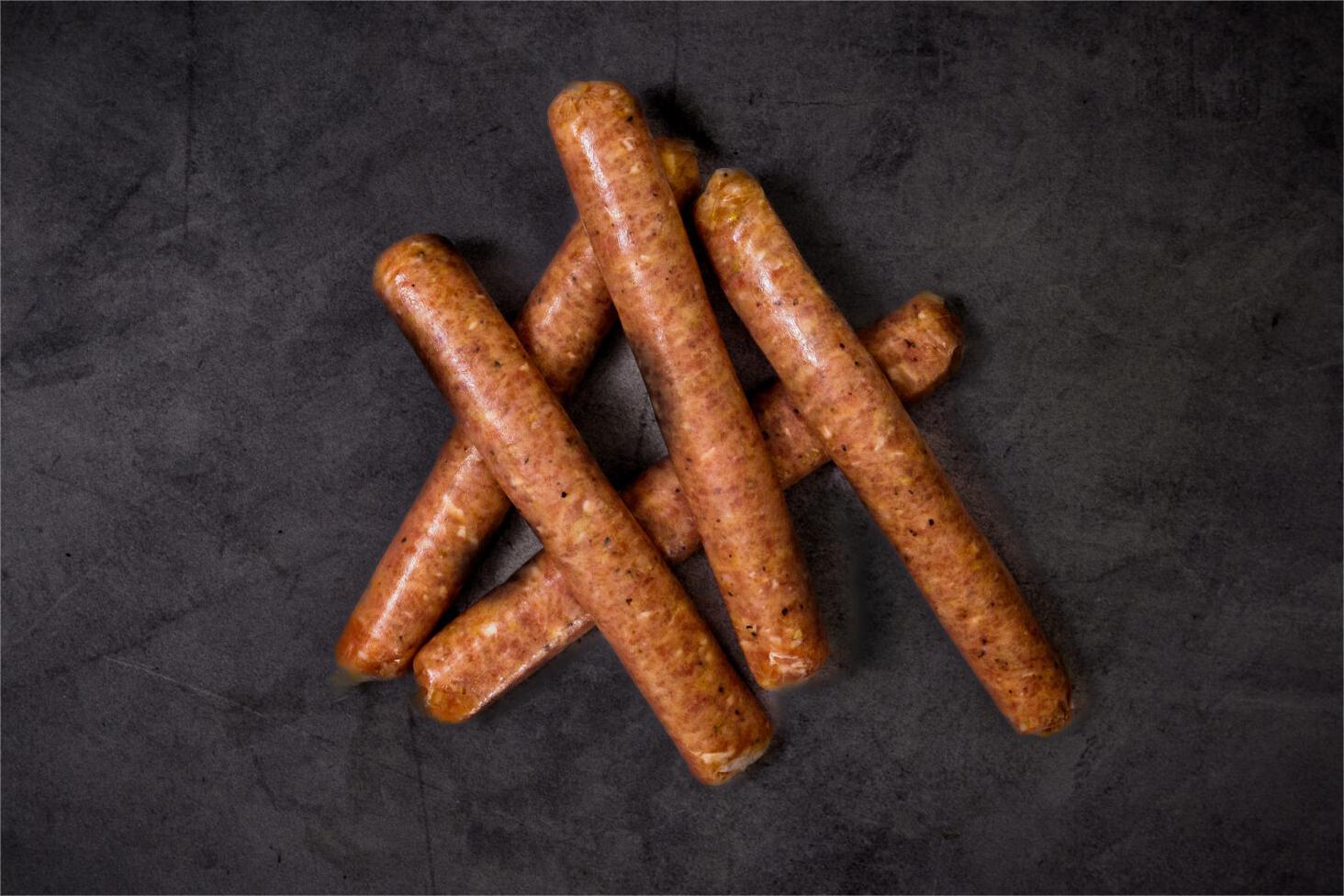 Made from pasture-raised ethically fed chickens with all-natural ingredients of kosher salt, cane sugar, fennel, coriander, black pepper, and bovine collagen casings.