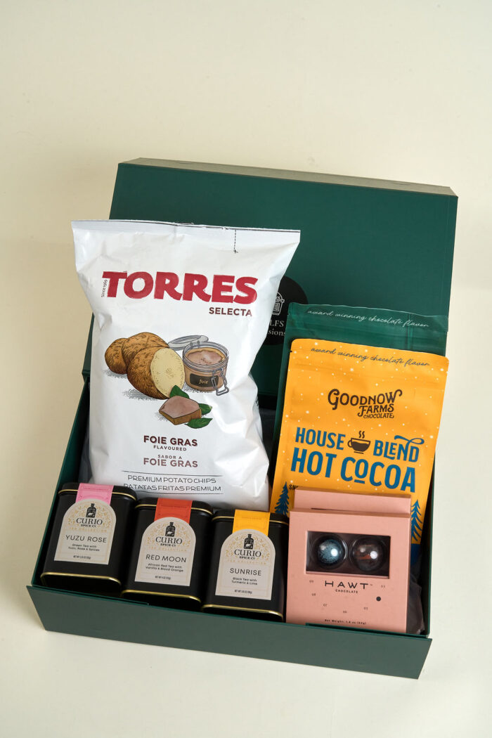 Includes: Foie Gras Chips, Artisan Teas, Hot Cocoa, Chocolate Bonbons.
